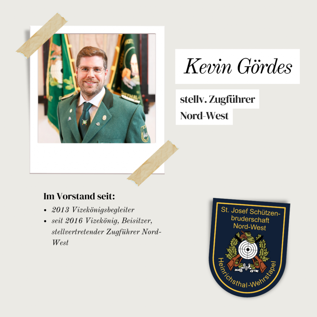 Zum erweiterten Vorstand gehören unter anderem die Zugführer und ihre Vertreter. Sie übernehmen Verantwortung für die Organisation und Führung unserer Züge, sind Ansprechpartner für ihre Mitglieder und sorgen dafür, dass Traditionen, Abläufe und Gemeinschaft gepflegt werden. Darüber hinaus richten sie gemeinsam wichtige Veranstaltungen wie das Zugschießen aus und sind maßgeblich am Aufbau des Osterfeuers beteiligt. Da unsere Bruderschaft aus zwei Zügen besteht – dem Zug Nord-West und dem Zug Süd-Ost – haben wir zwei Zugführer und zwei Vertreter.